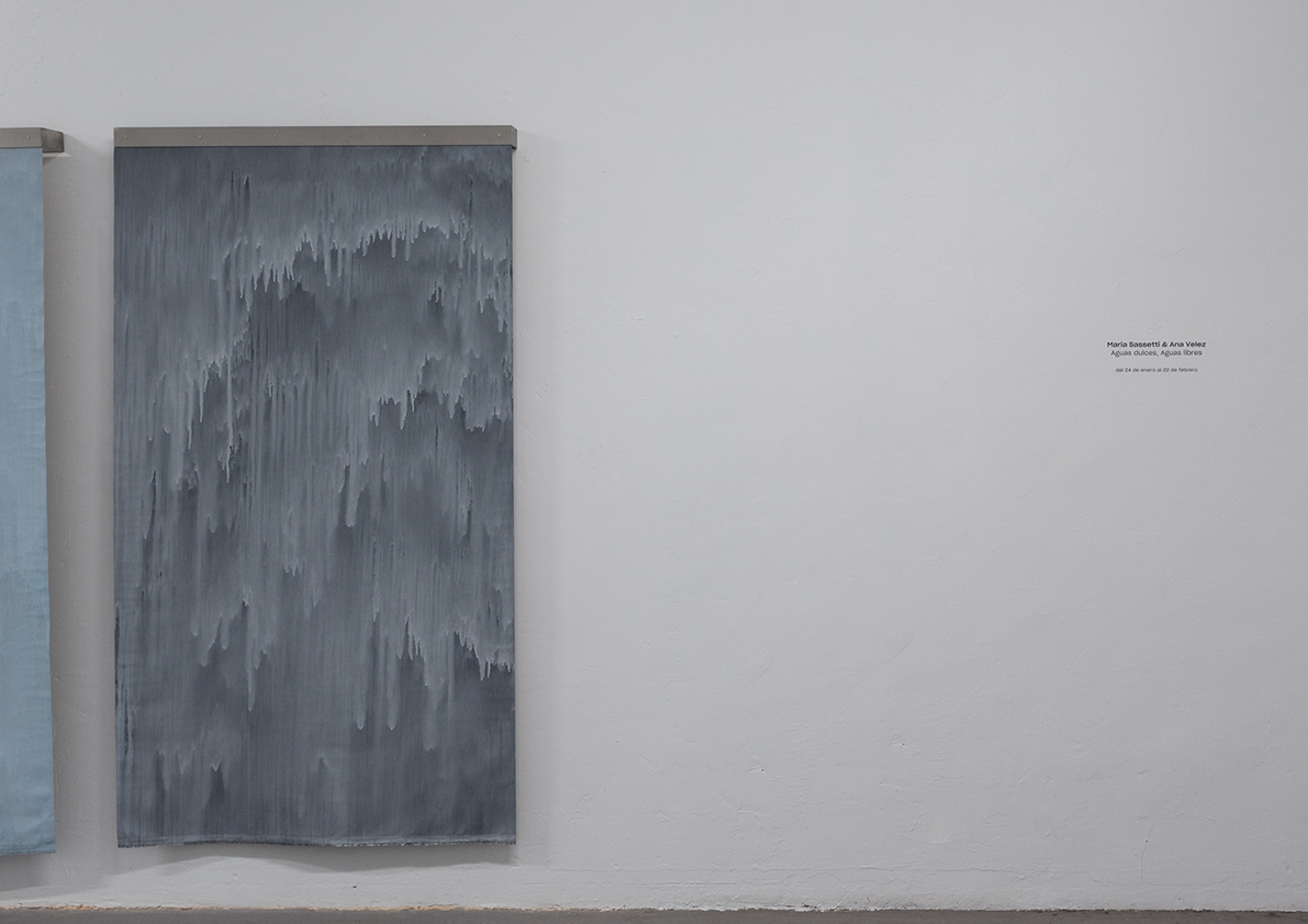 In the studio that Velez and Sassetti share, there's a reservoir that doubles as a swimming pool. A pool that transforms water into a painting medium through the suminagashi technique. For this process, the water's surface is painted, and the resulting unstable pattern is transferred to paper when it's placed on it. Liters of water and pigment flow across the surface of other pieces, and the ink carves channels. Here, everything revolves around surfaces that support forms and are transformed by contact with the skin of other materials. It's about margins, limits, and barriers that slip away, redefined by the properties of water. Velez and Sassetti are friends and have worked for years at Atelier Contencioso in Lisbon. From this close relationship emerges Aguas dulces, aguas libres, a duo exhibition they've been working on in parallel, featuring works by both artists and collaborative pieces. A series of pieces inspired by the politics and poetics of water.
