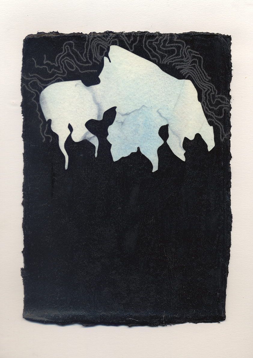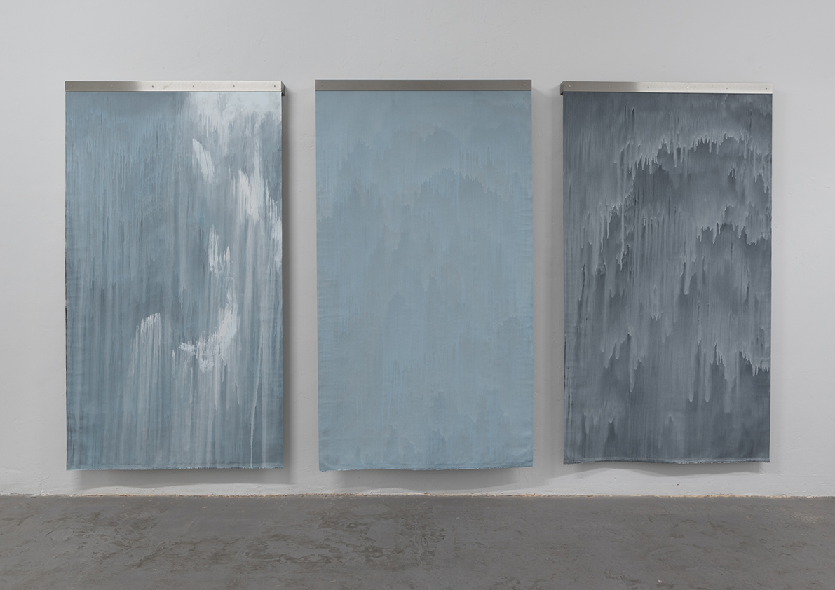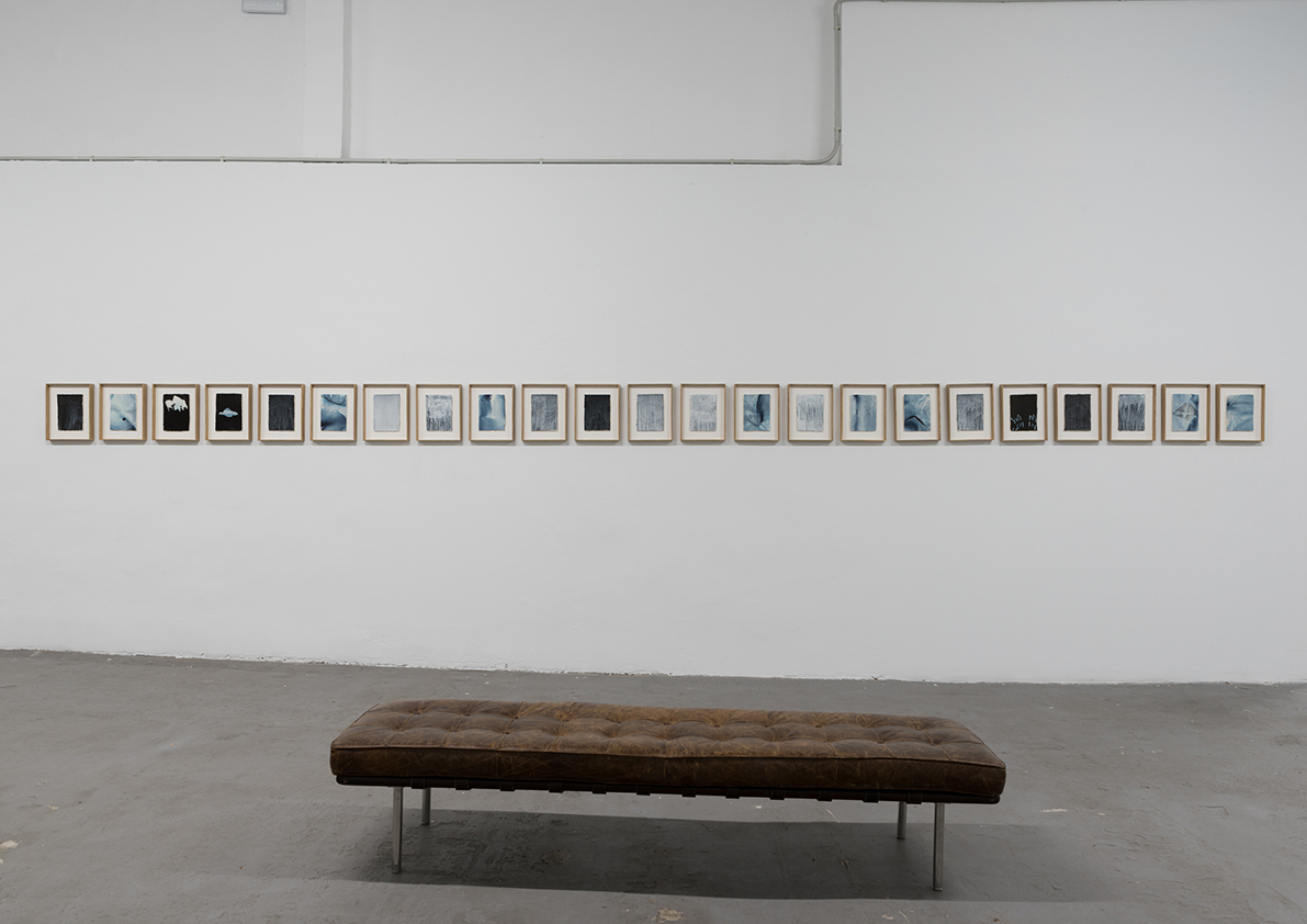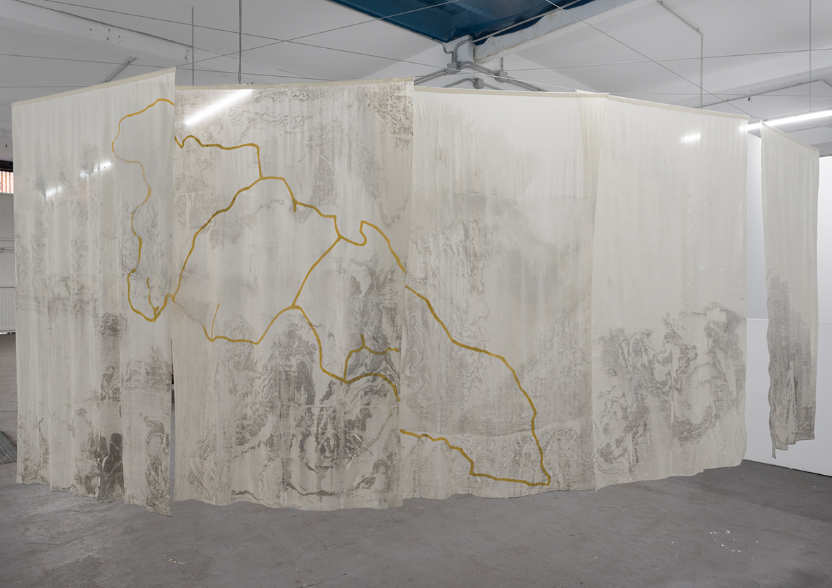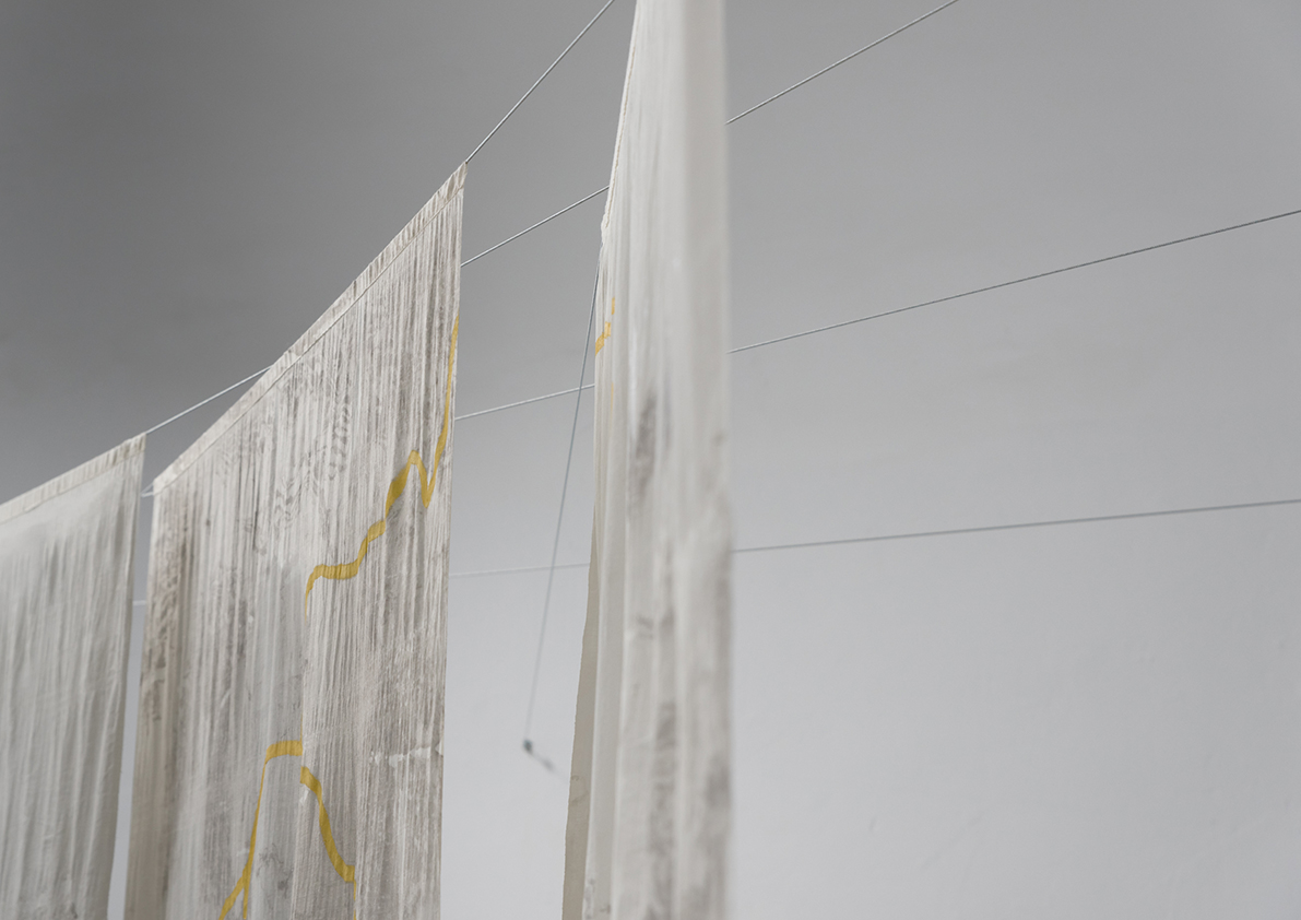 Each piece in this exhibition is a small work of engineering capable of containin water through refined techniques in a continuous and constant process. Together, they compose a cartography where fresh water guides the pigment and free water transforms paper into earth.