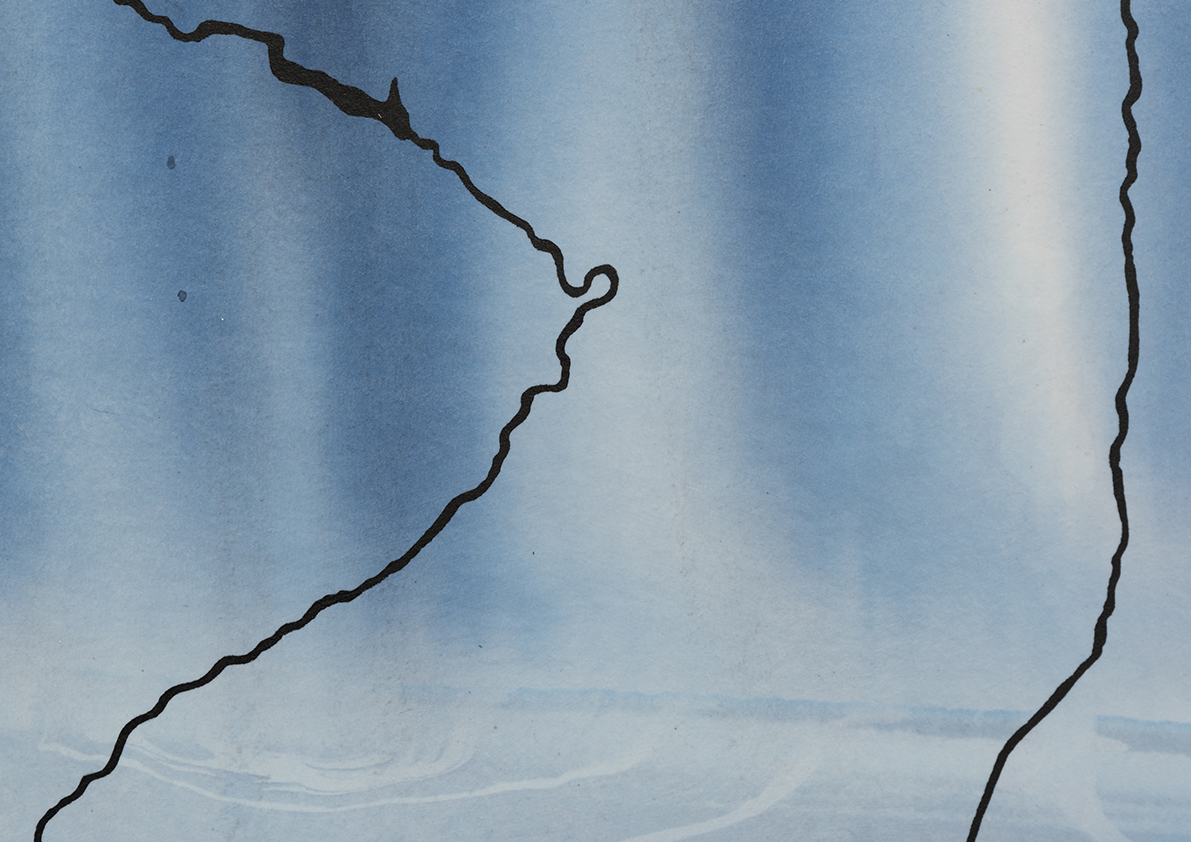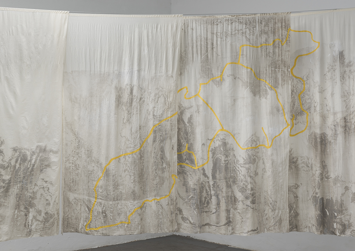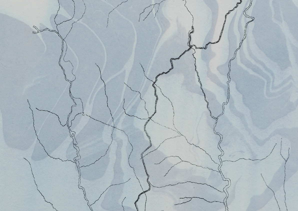 There are more than 2,500 dams and reservoirs on the Iberian Peninsula. These structures, through which Spain and Portugal manage their freshwater, have been studied by the artists to develop this exhibition. The works on display stem from detailed research into the circulation systems of water masses, their containment mechanisms, their uses, and their ownership. Velez and Sassetti have trace archival materials, maps, and photographs to explore the morphology of water management an representation. This analysis draws on the engineering and the footprint it leaves on the land: dams and reservoirs, aqueducts and canals. Here, maps dissolve int sensory images, and graphics flow like tiny rivers. The forms of water devour their representation. They themselves draw topographical lines, while the ink
